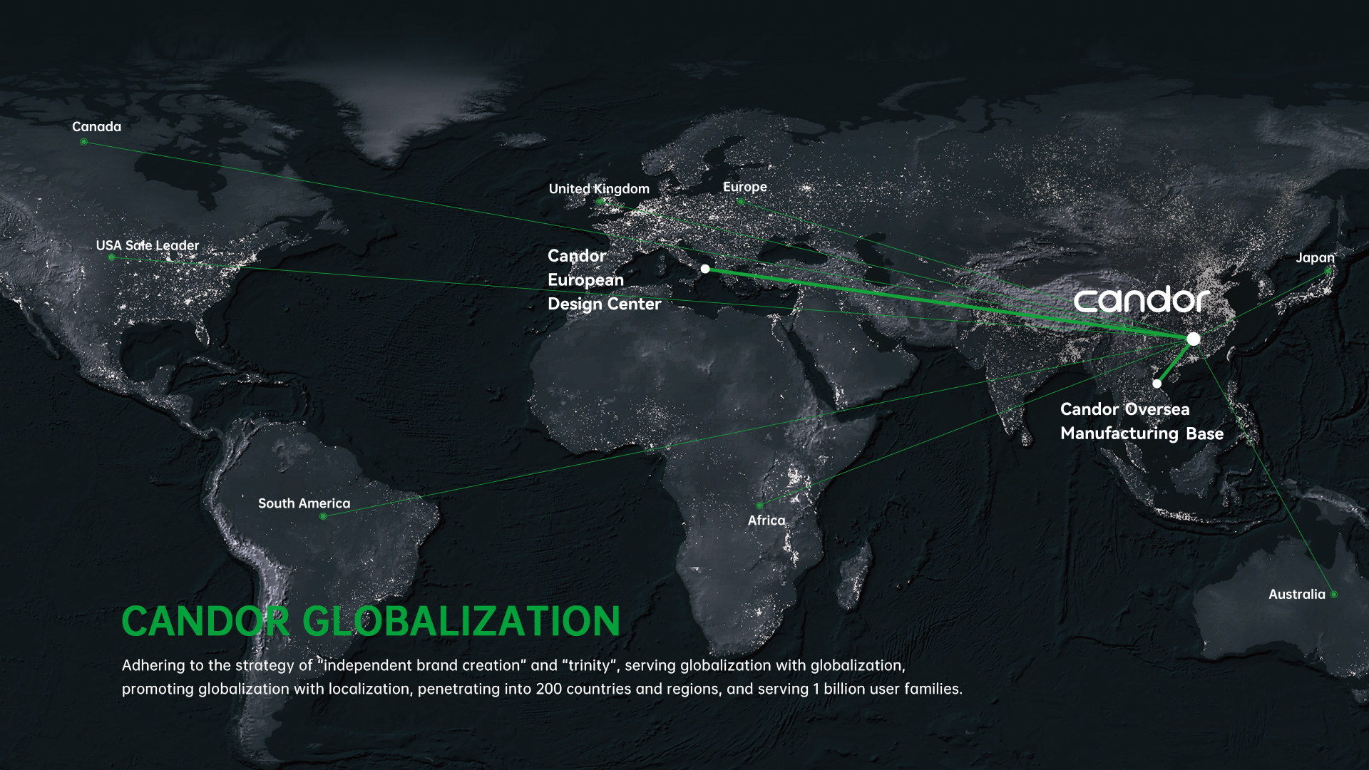 "Candor's global brand cluster satisfies the optimal experiences of different user groups across various regions worldwide."